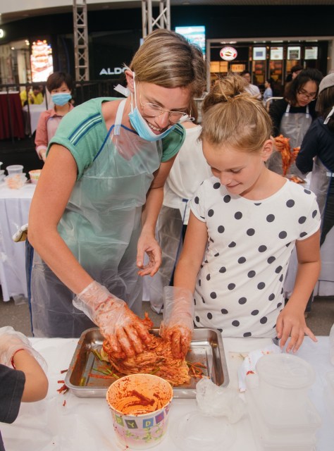 Le week-end sur Hanoï est mouvementé car il y a un festival de musique pop coréen. Il y a de multiples animations et des concerts gratuits sur plusieurs scènes. En fin d après midi un cour de cuisine est organisé avec une chef (apparement très connue). On y est d abord en tant que spectateurs et puis comme il reste de la place alors on se prête nous aussi au jeu. On nous fourni des tenus de chirurgien 😷 ah non pardon de cuisinier 👨🍳 et on s exécute sur les conseils de la chef. Au menu chou farci. On remercie le journaliste Nguyen pour les photos, les gens étaient amusés de nous voir à l œuvre 😂