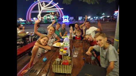 On retrouve par hasard une famille rencontrée au Laos « les roman de vadrouille »on passe la soirée ensemble. Les enfants sont contents de se retrouver, et nous aussi !