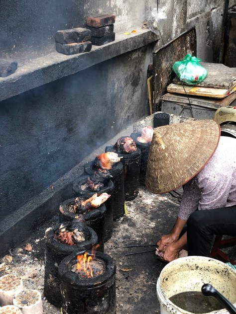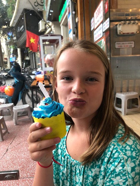 Albane et son cupcake 🧁 Bun Cha : vermicelles de riz au porc grillé de HanoiCochon grillé en pleine villeProduits de la mer dont des tortues