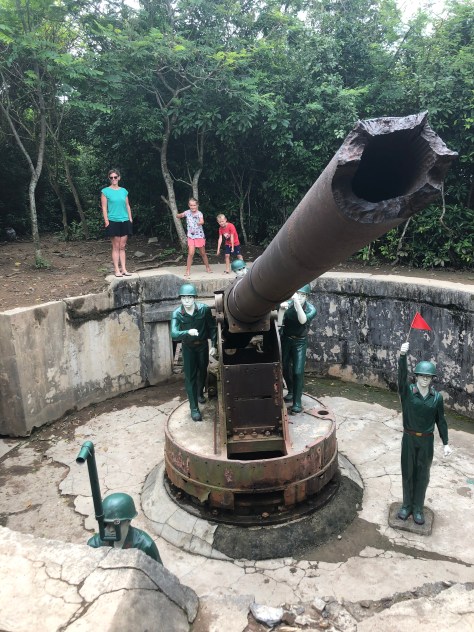 On profite d’une journée de découverte avant de partir en croisière, on monte au fort prendre un peu de hauteur sur la baie, c’est l’occasion de faire un petit peu d’histoire avec les enfants sur les guerres au Vietnam.