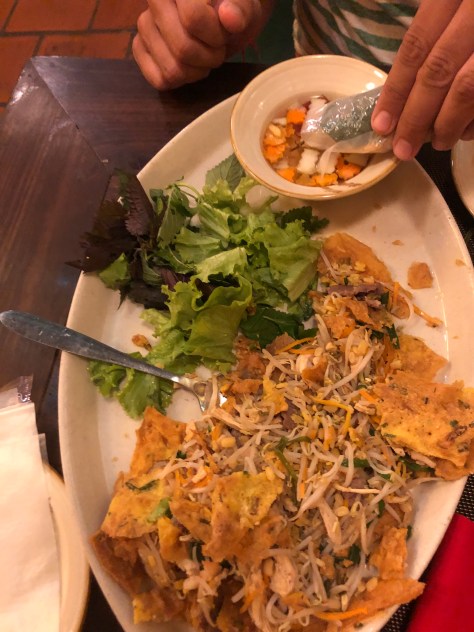CAO LAU : la spécialité de Hoi An , il est uniquement vendu dans cette ville. Il se compose d’épaisses nouilles de Cao Lau à base de riz, de tranches de porc ainsi que d’herbes aromatique.