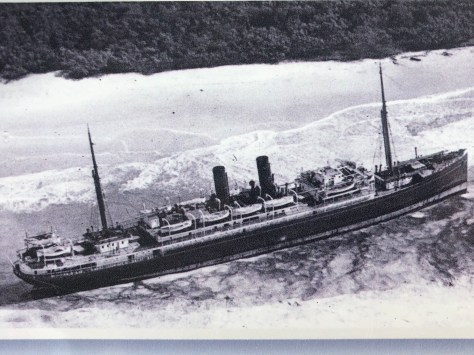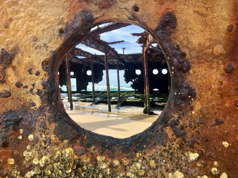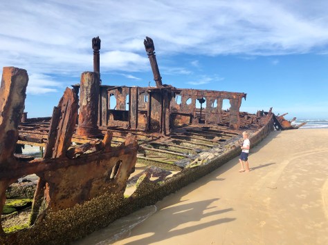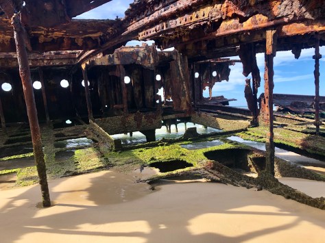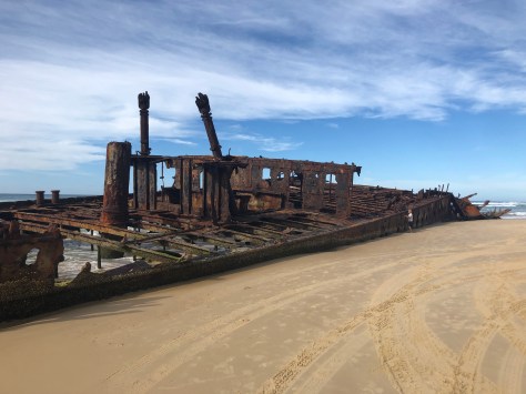 Nous nous arrêtons pour observer l’épave d’un bateau : le Maheno échoué en 1936.