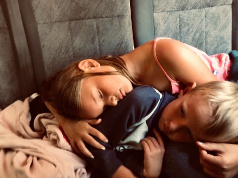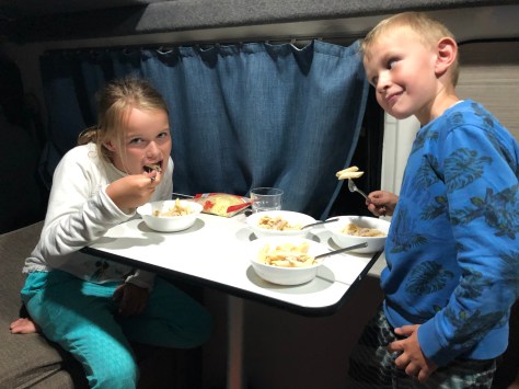En milieu de journée on fait route vers les Blue Mountains ( sur la route la police nous arrête car il croyait que les enfants dormait dans leur lit et n’étaient pas attachés mais nous étions en règle , après un test d’alcoolémie négatif lui aussi, eh oui 🍾, il nous laisse repartir ) pour finalement arriver de nuit (le soleil se couche à 17h15 😅) le camping est fermé alors on dort sur le parking à côté où nous n avons pas le droit de rester normalement. On prend le risque de se faire réveiller et déloger par un ranger. La nuit se passe bien mais au petit matin, il y a des voitures garées partout et des joggeurs en masse. on lit sur les pancartes qu il y a un ultra trail.
