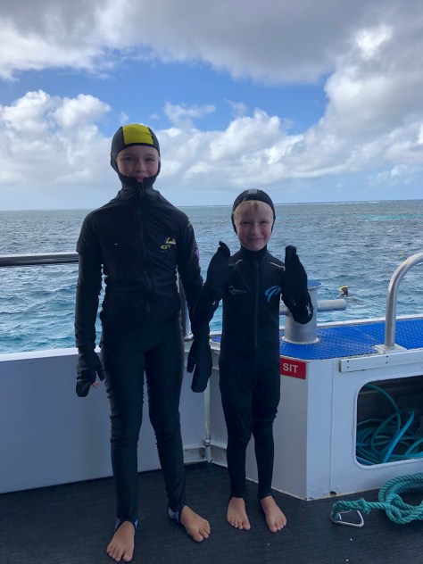 On continue vers Agnes water, on se pose 2 jours dans un camping sur la plage. C est le dernier spot de surf avant d arriver sur la barrière de corail. L occasion de réserver un cours en famille. Rdv pris pour le lendemain matin 9h. Mais pas de chance c’est sûrement le seul jour de l année où la mer ressemble à un lac et qu il fait super froid. Le gars de l’école de surf a pitié des petits frenchies et nous rembourse le cour. On est un peu dégoûté (surtout les enfants) mais pas mécontents de ne pas se mettre en maillot 🥶