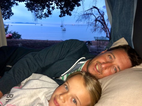 Il est est vraiment l heure de partir avant d être coincé par la marée. On rejoint notre camping ou nous avons loué une tente pour nous 4 à Cathedral beach.